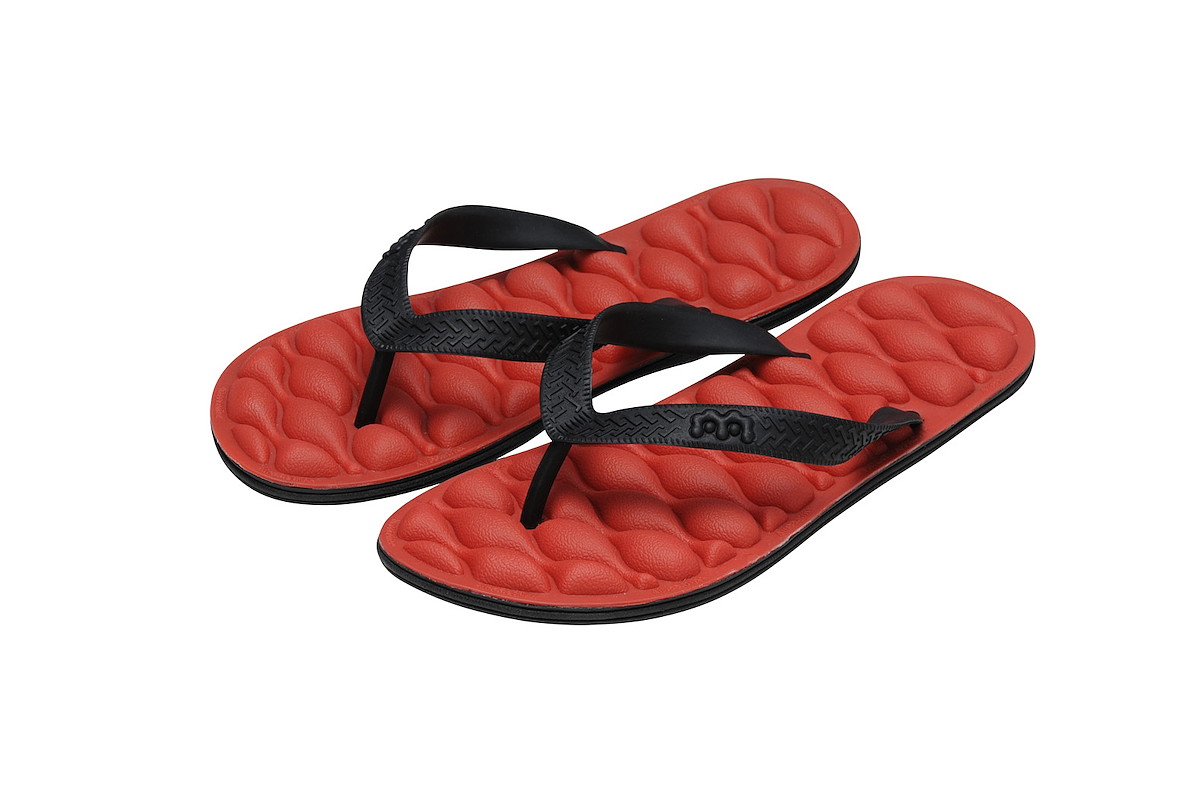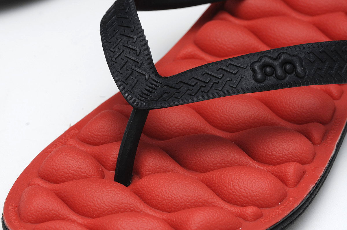 このサンダルの気持ちのいい履き心地は、なんと緩衝材にヒントを得て、開発されたエアバックを搭載しているから。これまでに体験したことのない、まるで雲の上を歩いているような感覚を体感できるのが特長だ。