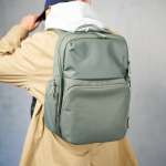 上部フロントポケットはスマホや財布などが取り出しやすく、伸縮性のあるファスナー付きサイドポケットはサングラスケースやウォーターボトルなどを入れておくのに適しているなど、抜群の使いやすさが光ります。サイズは高さ約45cm×幅約29cm×マチ約16cmで、容量は約20.9リットル。ビジネスからプライベートまで、使うシーンを選ばないゆとりのあるサイズが魅力的です。