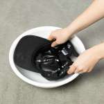 バイザーには柔軟性と弾力性のあるEVA素材を使用しており、折りたたんでもOK。バッグやポケットにキュッと入れて持ち運べます。ヘルメットを脱いだあとの髪のクセ隠し用に忍ばせておけば安心!