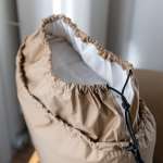スタッフサック型のクッションカバーは、落ち着いた色合いのベージュ・カーキ・ブラックの3色展開。2月発売です。
