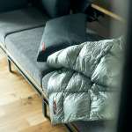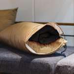 ソファでくつろいだりうたたねをする際には、スタッフサック型のクッションカバーからダウンブランケットとまくら型クッションを取り出して使えます。ブランケットはアジャスターを留めて羽織れる仕様。もちろん家から持ち出してアウトドアで活用してもOKです。ブランケット専用のケースも付属します。