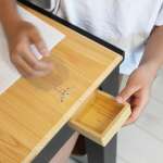 作業中はペンや鉛筆、消しカスでテーブルの上が散らかりがちですが、付属のペントレーとミニトレーを使えば一気に解決。ペントレーはごちゃつきがちなペン類をまとめ、ミニトレーには消しカスを入れられます。また、タブレット用スタンドも搭載。