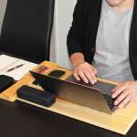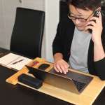 PCやスマホなど、仕事に必要なものを一式ボードに乗せれば、ボード上のアイテムをまとめて運べます。部屋のどこへでも簡単に移動できるのが便利。
