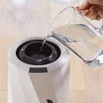 サイズは高さ42cm×幅24.6cm×奥行25.8cmで、重さは約3.0kg(付属のACアダプタを含む)。内蔵のタンクは容量3リットルです。天面から本体のタンクへ直接水を注げる設計で、スタイリッシュなシルエットは和洋を問わず部屋に溶け込みます。