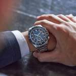ケースとベルトはステンレス製。風防にはサファイアガラスを採用。10気圧の防水性能も備えています。