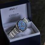 裏蓋にANAのロゴと飛行機の影が刻まれた、限定コラボモデルならではのデザインが魅力の「CITIZEN for ANA」。気になる人は要チェックです。