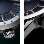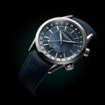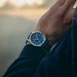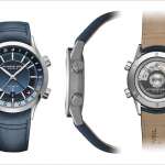 ダイアルカラーとカーフレザー製ストラップ(表側)にブルーカラーを配し、夜明け前と日没後の時間帯“ブルーアワー”をイメージ。ダイアルのグラデーションブルーが昼夜の移り変わりを、さらにスネイル仕上げを施したアワートラックとインデックスに高低差を設けることで、立体感のあるブルーを表現しています。
