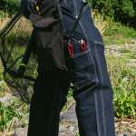 ハンマーループにプラスして、左右の腰にもループが設けられ、ランディングネットを左右どちらでも挿すことが可能。膝の部分にはクッションを入れられるポケットも用意(クッションは必要に応じて各自でご用意を)。膝をつくシーンの多い釣りやキャンプ、写真撮影、DIY作業などでも膝を保護してくれます。