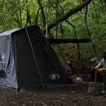 PolariSign「OwL」は、いままでにない居住性重視型のソロ用テント。テント本体は幅240×奥行き200cmの台形型で、内部に幅200×奥行き80cmのインナーテントを装備。ソロ用テントとしてはかなり大きな室内空間が確保できるから、タープなしでもくつろぎのプライベートリビングが実現できます。