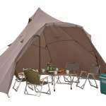 この2月より第1弾として3製品が発売されますが、中でも特に注目が「ワイドティピー/3025(グレージュ)」(3万9600円)。ファミリーユースを想定したワイドサイズのティピー型テントです。