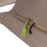 フライシートとインナーテントにはどちらもリサイクルポリエステル生地を使用、フライシートは耐水圧1500mm、またインナーテントのフロア部分には耐水圧2000mmのリサイクルポリエステルオックスが使われています。