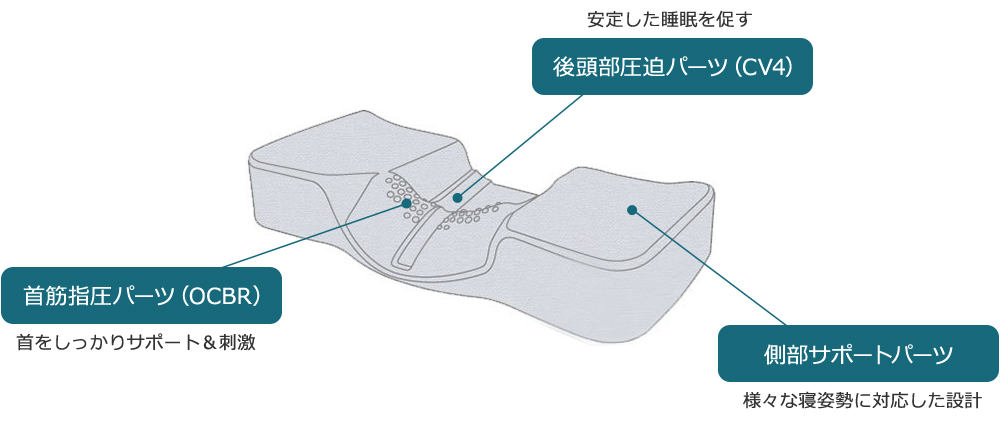 「カヌダ ブルーラベル アレグロ」で注目すべきは中央部の特徴的なくぼみ。ここに「徒手法」を取り入れており、首筋に心地よい刺激を与えます。