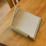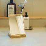主張しすぎないシンプルなたたずまいは、どんなインテリアにもなじみやすそう。ミラーは台座から外せるため、手鏡としても利用可能です。
