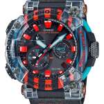 スペックはこちらも「GWFーA1000」を踏襲。耐衝撃構造、耐磁時計1種、ISO規格をクリアした200m潜水用防水、半永久的にバッテリー切れの心配がないタフソーラー(ソーラー充電システム)を搭載。さらに電波受信機能、デュアルタイム、モバイルリンク機能(Bluetooth通信によるスマホ等との連動)、ダイビング機能(潜水時間計測、水面休息時間表示、ダイビングログ取得)、針位置自動補正機能、アラームやタイマー、カレンダーなど、多彩な機能が装着者のアクションをアシストします。