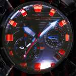ケースの素材はカーボン繊維入りの強化樹脂製で、ケースサイズは56.7×51.7×厚さ19.7mm。風防は内面反射防止コーティング&球面・曲面仕上げのサファイアガラスを採用しています。LEDライトとスーパーイルミネーター(発光ダイオード)、ネオブライト(蓄光塗料)の塗布により、夜間暗所でも時刻確認がスムーズに行えます。