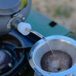 ハンドドリップの基本はいうまでもなく、一定の速度でゆっくり湯を落とすこと。自宅など道具が揃った環境なら、一度沸かした湯をドリップ専用ポットに移せばいいけれど、携行品が限られるアウトドアではあまり持ち物を増やしたくないですよね。そこで活用したいのがこの「アウトドアドリップノズル」。ご覧の通りケトルの注ぎ口に後付けできるドリップ専用ノズルです。