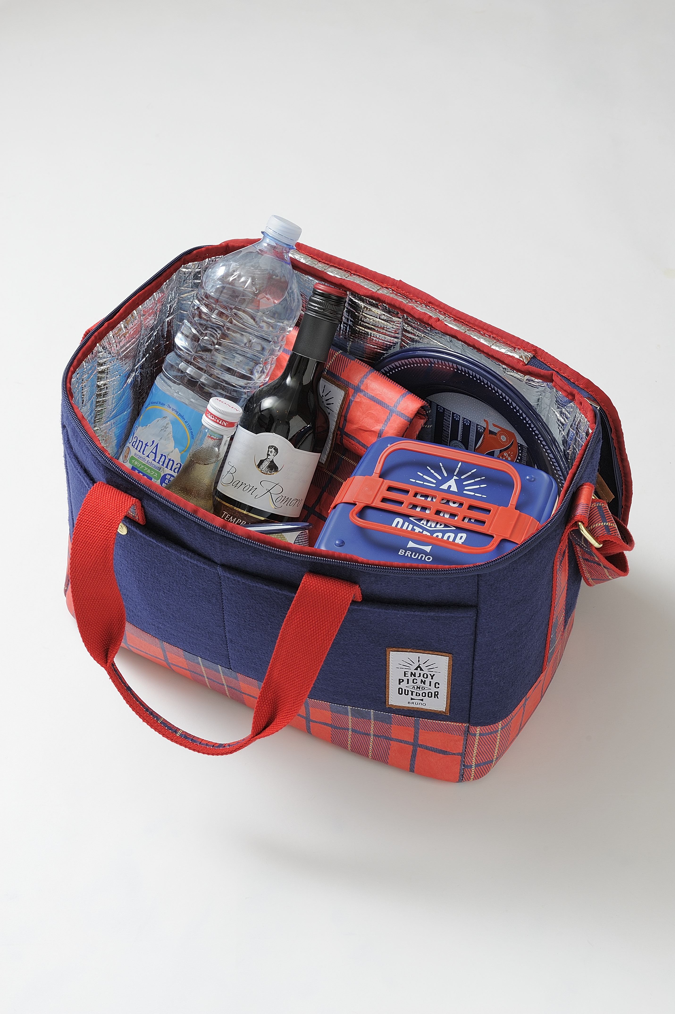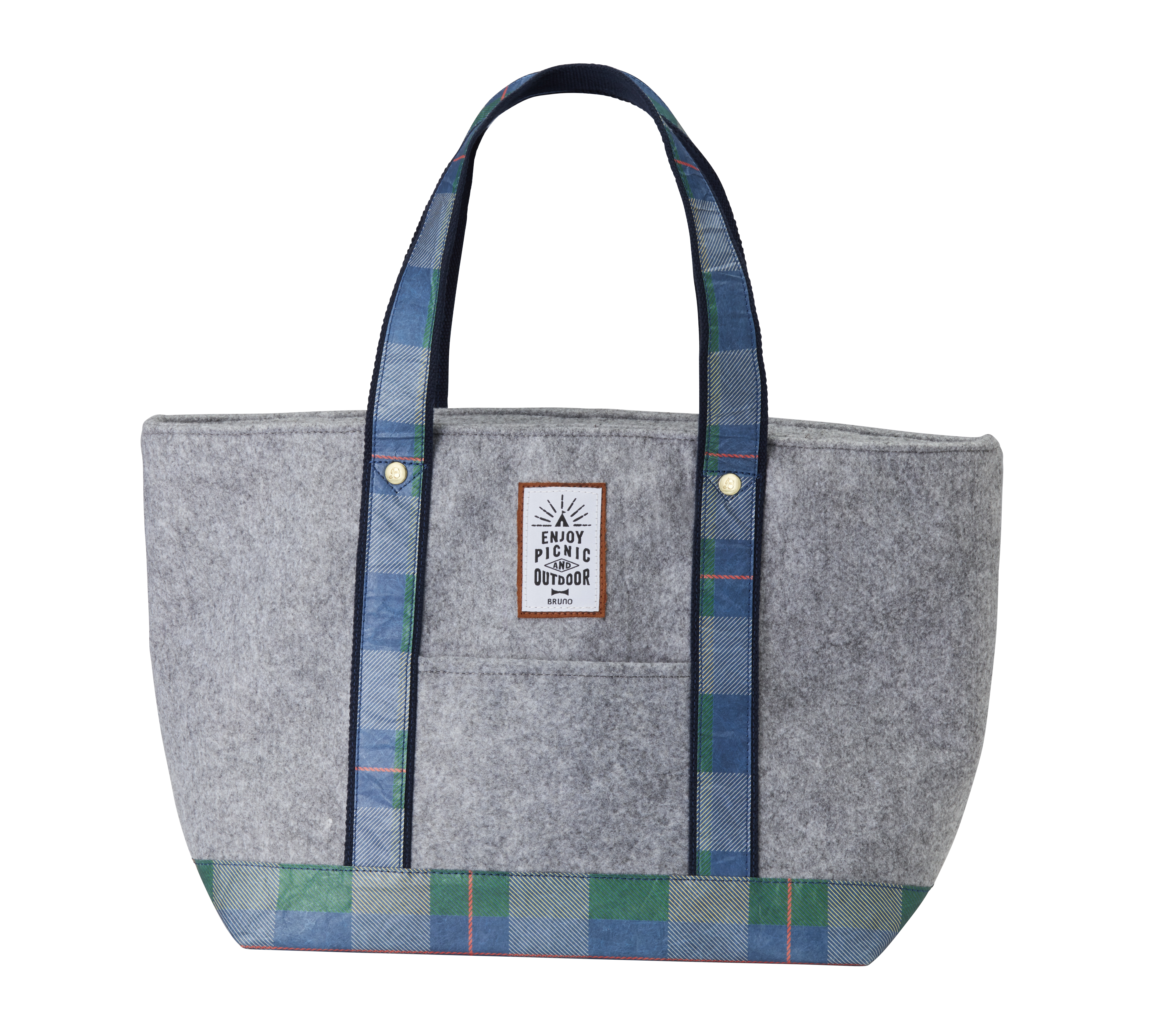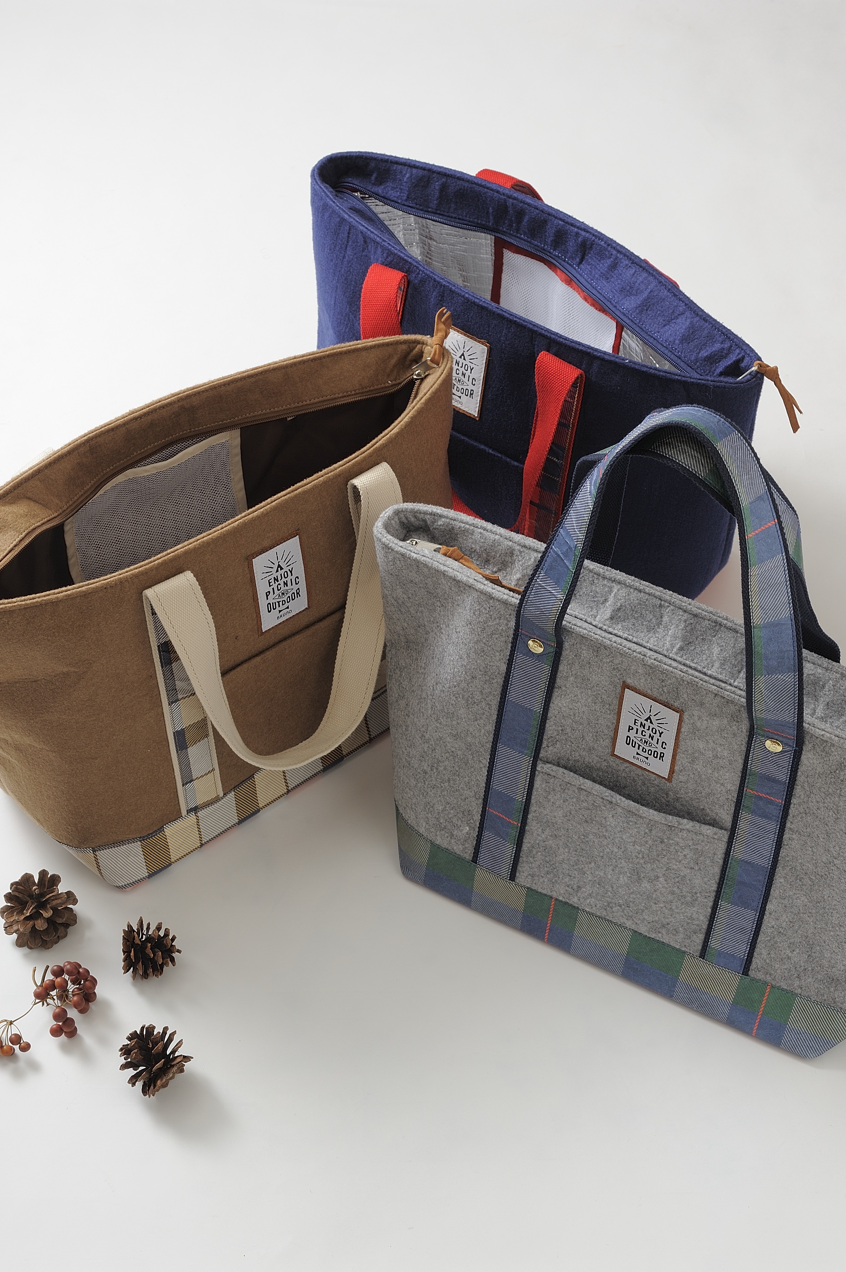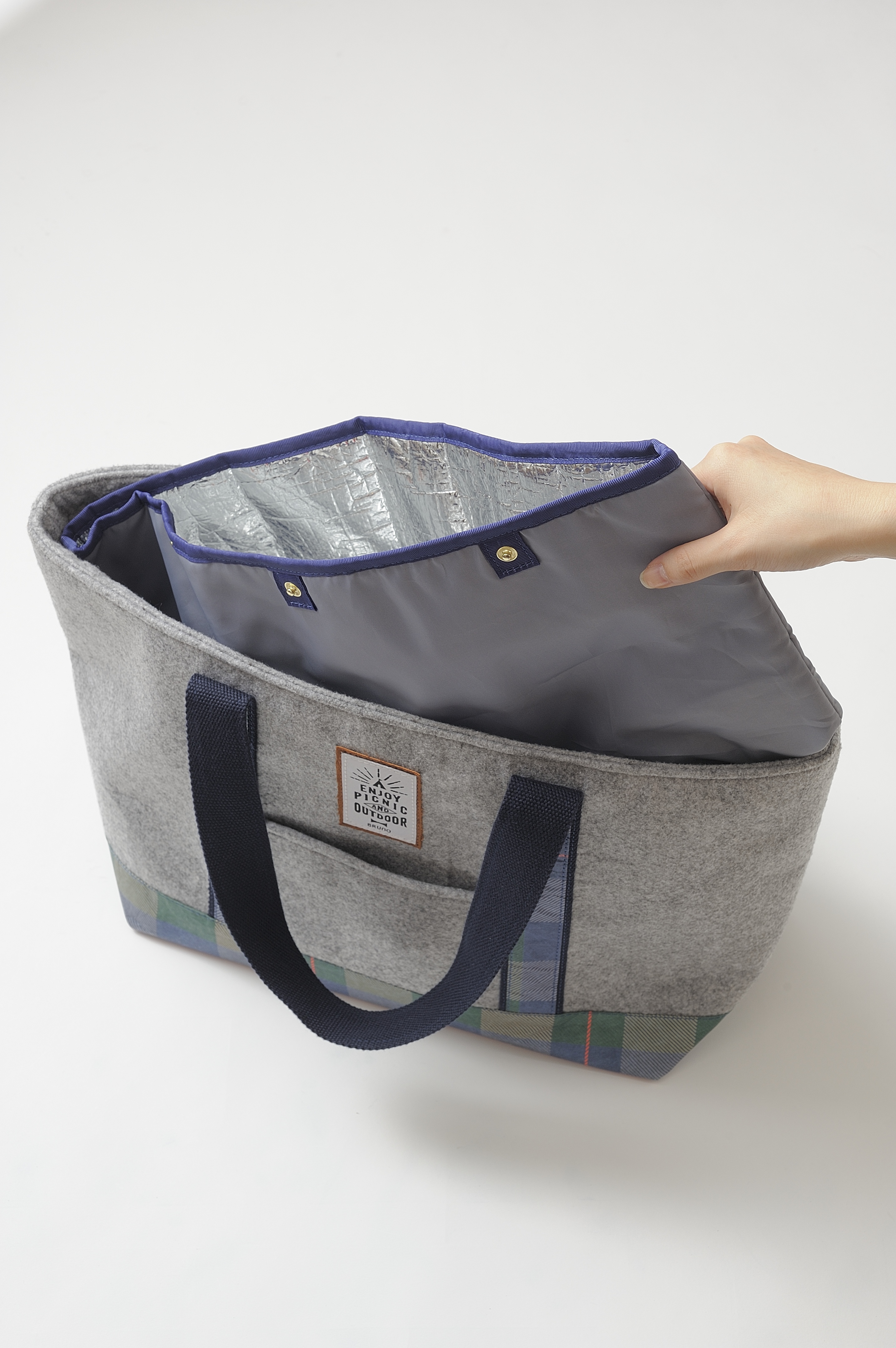 フェルト素材とネルシャツのような温かみあるチェック柄が、夏から秋に向かっていくこの季節の雰囲気にぴったり。アルミ蒸着の裏地や保冷バッグで食材の冷たさもしっかりキープしてくれます。