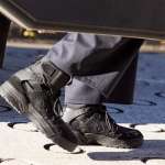 オールブラックで統一されたデザインは普段着とも相性抜群。また、リップストップやスエードなど、アッパーに異なる素材を組み合わせて、絶妙な奥行きを生み出しています。