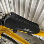 「MOROBBIA TOP TUBE BAG」(6600円)は、ベルクロストラップで自転車へ固定して使うトップチューブバッグ。形状をキープする心材入りです。ボディにはリサイクルナイロンクロスリップ素材を採用。すぐに取り出したいスマホや財布を収めておくのに便利な小型サイズとなっています。サイズは長さ21×幅5×高さ10cmで、重さは約90gです。