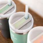 FlowState(フローステート)のフタは、より漏れにくく進化。回転式で3WAYの使い方ができます。フルカバートップでしっかりとフタをすればこぼれにくく、持ち運びに便利。ストローは飛び出しにくい仕様にアップグレード。こぼれないよう、根元にシリコンシールを施しています。もちろん直飲みもできる仕様です。