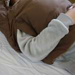 アームホールから手を出せるので、寝る前にスマホをチェックしたり、本を読んだりも可能。冷え込み厳しい日には頭からすっぽりかぶって、そのままリビングでくつろぐ…なんてことも。