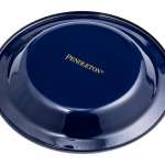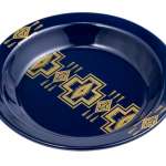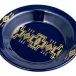 ペンドルトンでは過去にもこの柄を採用したテーブルウエアをリリースしていますが、特に今シーズンはナス紺に近い華やかなネイビーにゴールド単色でモチーフをあしらうことで大人っぽい雰囲気に。深い色味はメインはもちろんサラダや果物、スープ、スナックなど、どんなメニューを載せても絵になります。