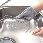 水だけでも汚れが落とせるので、気になる汚れを見つけたら、まずは手袋を装着。蛇口の湯アカやキッチンの水切りカゴ、洗面の排水口などの細かい部分は指先を使ってゴシゴシ。あとは水で流すだけで、あっとという間にピカピカになります。