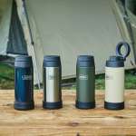 金属製の飲み口には口当たりのよい薄さで、フタ部分はしっかり閉まるスクリュータイプを採用。ハードな使用を想定して、衝撃に強いソコカバーが装着されています。安定性のある形状なので、アウトドアシーンに最適です。
