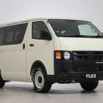 純正のグリルラインを活かしたマッドブラックのフェイスは、存在感のあるTOYOTAのロゴがワンポイントで入り、FLEXオリジナルの丸目ヘッドライトがレトロな雰囲気に。クラシカルなデザインが、ハイエースの魅力を一段と引き立てます。