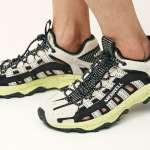 アウトソールには、機能性において定評のある、ビブラム社製のサステナブルアウトソール“EcoStep”を搭載。タウンでも水辺でもしっかりとしたグリップ力を発揮するのは、特にアクティブ派にとっては頼もしいもの。さらに、キャンプやスポーツシーンでのスムーズな着脱を考えて、シューレースシステムにはレースロック&伸縮性に優れたバンジーコードを使用。快適なフィット感と脱ぎ履きしやすさの両方を叶えています。