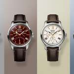 ムーブメントには、「琺瑯ダイヤル」「漆ダイヤル」にはレトログラード式日付・曜日機構搭載の“キャリバー6R24”、「有田焼ダイヤル」「七宝ダイヤル」には日付表示機能搭載の“キャリバー6R27”を搭載。いずれもローマ数字とバーインデックスを交互に配した変則レイアウトを採用。装着感を重視してデザインされたシンプルなラウンド型ケースには、110年の歴史に裏付けられた使い心地へのこだわりが光ります。