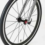 足回りは、直径の大きい451ホイールと20インチのスリックタイヤを備え、走行性能を重視。クイックリリースを採用しているので、収納時や整備時は簡単にタイヤを取り外せます。