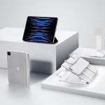 一見何の変哲もないiPadカバーに見えますが、注目したいのは本体下部のUSB-Cポートにあたる部分です。当該部分の内側にはUSB-Cポートに装着できる端子を備えており、その端子がカバー内部を通じて、中央に設けたワイヤレス充電端子と繋がっているという仕組み。同梱の専用ワイヤレス充電器に近づければ、マグネットの力でスッと吸い付き、即座に充電スタート。面倒なケーブルの抜き差しに煩わされることなく、手軽に充電できるというわけです。
