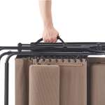使用サイズは椅子スタイルで高さ約165cm×幅約89cm×奥行約89cm、フルリクライニング時は高さ約90cm×幅約89cm×長さ約165cm。収納サイズは高さ約90cm×幅約69cm×厚さ約26.5cmとコンパクトに畳めます。重量は約11.5kg、耐荷重は約100kgです。