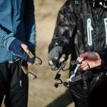 耳の後ろから引っ掛けるカジュアルなスタイルもアウトドアには好相性。キャップやビーニーとも干渉しないから、ファッションを思いのままに楽しめます。使わないときに、サングラスやゴーグル感覚でカラビナにひょいと掛けておけるのも便利です。