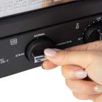 本体正面には3つのつまみ型ダイヤルを搭載。左のダイヤルでは“スチーム・ノーマル・コンベクション”の3つのモードを切り替えられて、中央の温度調節ダイヤルでは80~250℃の温度設定が可能。右のタイマーダイヤルでは、1~30分のタイマー設定を行えます。