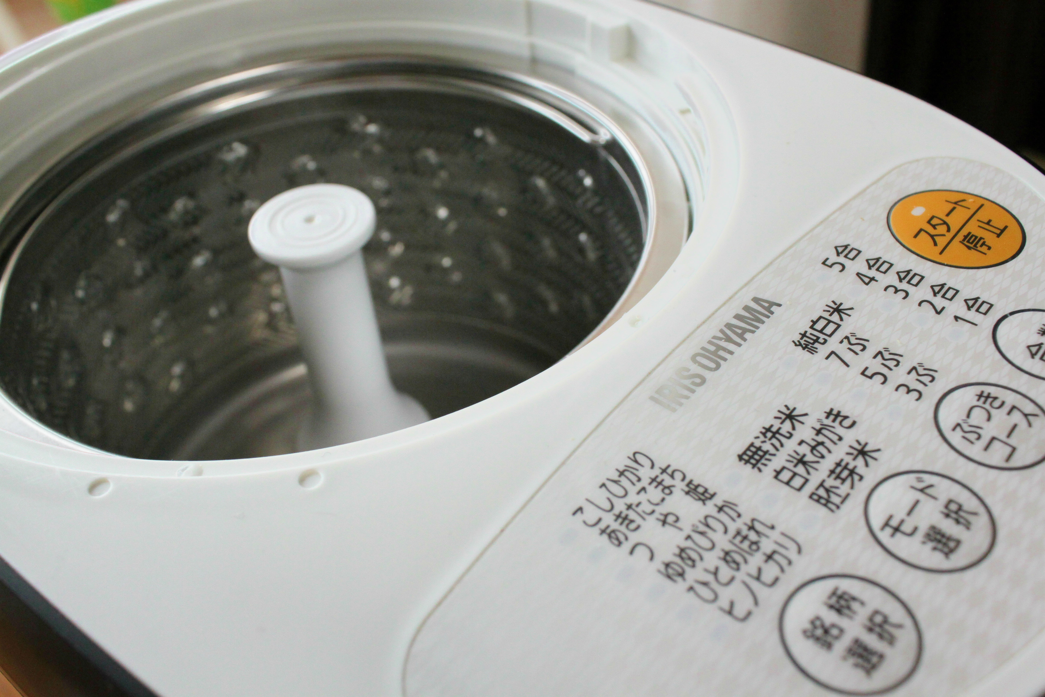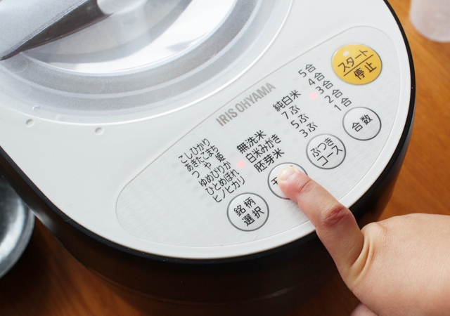 アイリスオーヤマの精米機「銘柄純白づき」は、精米機の中に玄米を入れ、コースに合わせてボタンを押すだけ。精米後は通常通りに米をといで、炊飯器で炊くだけで、極上ご飯が楽しめます。
