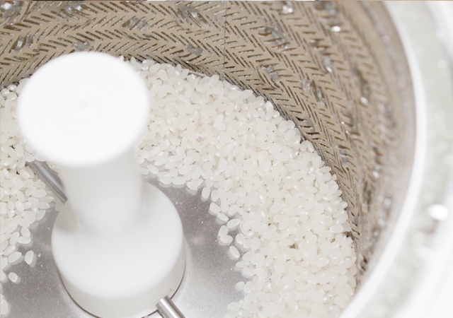 白さと美味しさの秘密は、特殊な突起のついた「ディンプルメッシュ構造」。この突起によって精米機内に乱流が起こり、米を優しく均一に磨き上げます。