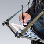 ショルダーバッグのように肩掛けしてもいいし、ブリーフケースのようにハンドルを握って持ってもOK。またメモやスケッチをとる際には、ストラップを首にかけて画板のように使える点も便利です。