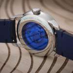駆動部として採用されているのは自動巻きムーブメント SW261-1。シースルーバックになった裏ぶたには鮮やかな“ルイ・エラールブルー”でカラーリングされたガラスがはめ込まれており、ムーブメントの華麗な装飾を、ガラス越しに楽しむことができるようになっています。