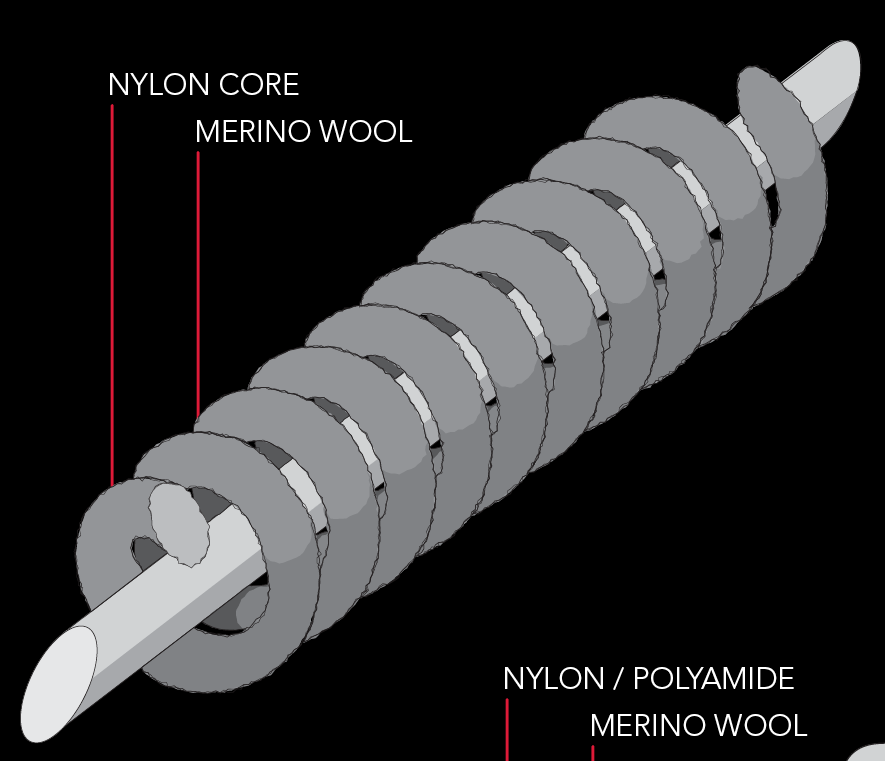 “コアスパン テクノロジー”を採用した「SATORO」 の繊維。破裂強度と耐磨耗性がアップ