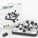 「AIスマート4」は5×5マスのスマートボードと、黒白のスマートブロックで構成されるシンプルなつくりのボードゲーム。遊べるゲームは「CONNECT FOUR(AI 3D四目並べ)」と「LIGHT OUT(アルゴリズム・ゲーム)」の2種類。このうち「LIGHT OUT(アルゴリズム・ゲーム)」は、一人用のパズルゲームで難易度は初級・中級・上級の3つから選べます。