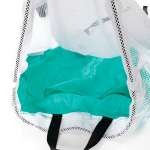 ポイントは、内部の背中側に搭載した大きな吊るしポケット。ポケットは中の見えない生地なので、下着などの見られたくないモノや財布やスマホなどの貴重品を入れるのにぴったりです。