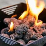 ガスの炎は受け皿(幅183mm)にセットした付属の溶岩石を通すことで、自然の炎のように揺らぎ、まるで炭が燃えているような雰囲気たっぷりの焚き火に。眺めているだけで心が落ち着き、リラックスできます。