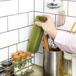 使わないときは、くるっと巻いて隙間に収納。ひとり暮らしの小さなキッチンや、サブまな板としての利用にも便利なW278×H200mmというサイズ感。しかも自立する形状…。これまでのまな板の常識を覆す新しいスタイルの「ロールカッティングボード」。