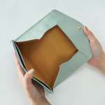 素材となるレザーは、この財布のために作られた国産の牛革で、コインが自動仕分けされやすく開閉しやすい、ちょうどよい硬さになっています。また、傷が目立ちにくくなるよう細かい模様を型押し加工してあり、断面のコバも革の色と合わせた高級感のある仕上がりに。さらに厚みなどを微調整することで、オールレザーの財布としては軽い145gとなっています。