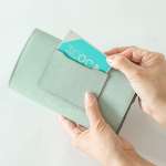 コインスペース部分は大きく開いてトレイのように一覧できる、ギャルソン型と呼ばれるタイプに。そのため、小銭が取り出しやすく、支払いもスムーズ。コインスペースの端には「ねこ耳ばさみ」というタブがあり、お札を一時的に収納しておくこともできます。