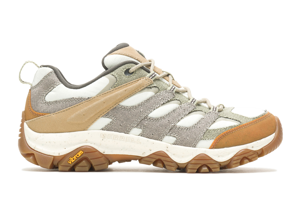 そんな取り組みをまさに具現化したのが、「MOAB 3 MOONSHOT ECO(モアブ 3 ムーンショット エコ)」(2万7500円)。メレルの誇るハイキングシューズ「MOAB」を、最先端の技術によって作られるさまざまな自然由来の素材で構成した、フルサステナブルモデルです。