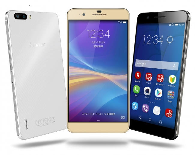 ファーウェイが5月20日に、新端末の「honor6 Plus(オナーシックス プラス)」を発表しました。本機は、格安SIMで使えるSIMロックフリーの5.5インチモデルです。カラーはブラック、ホワイト、ゴールドの3種類を用意。同日に発表した楽天市場内のファーウェイ専門オンラインストア「Vモール」で6月中旬から販売します。