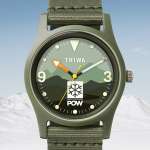 「TIME FOR SNOW」は、そんな“POW”の活動への共感から生まれたコラボレーションモデル。37mm径のコンパクトなケースに日本製クオーツムーブメントを収納。厚さ10mm、重さ36gのスリム仕様です。カーキ色の濃淡で連なる稜線を描いたモダンなグラフィックは、カジュアルながら、どこか品の良さを漂わせます。